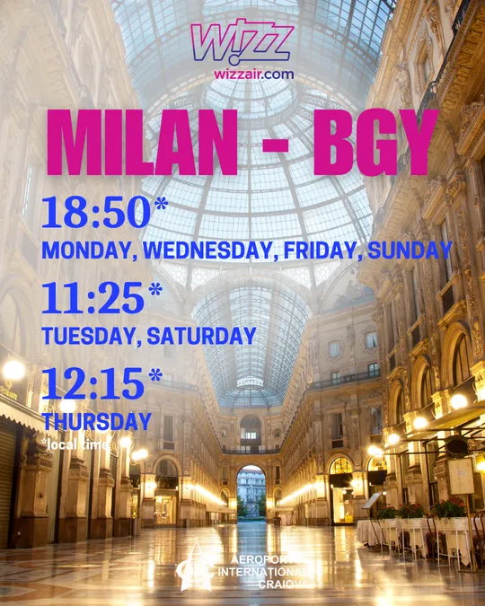 Lista cu zborurile regulate de pe Aeroportul International Craiova