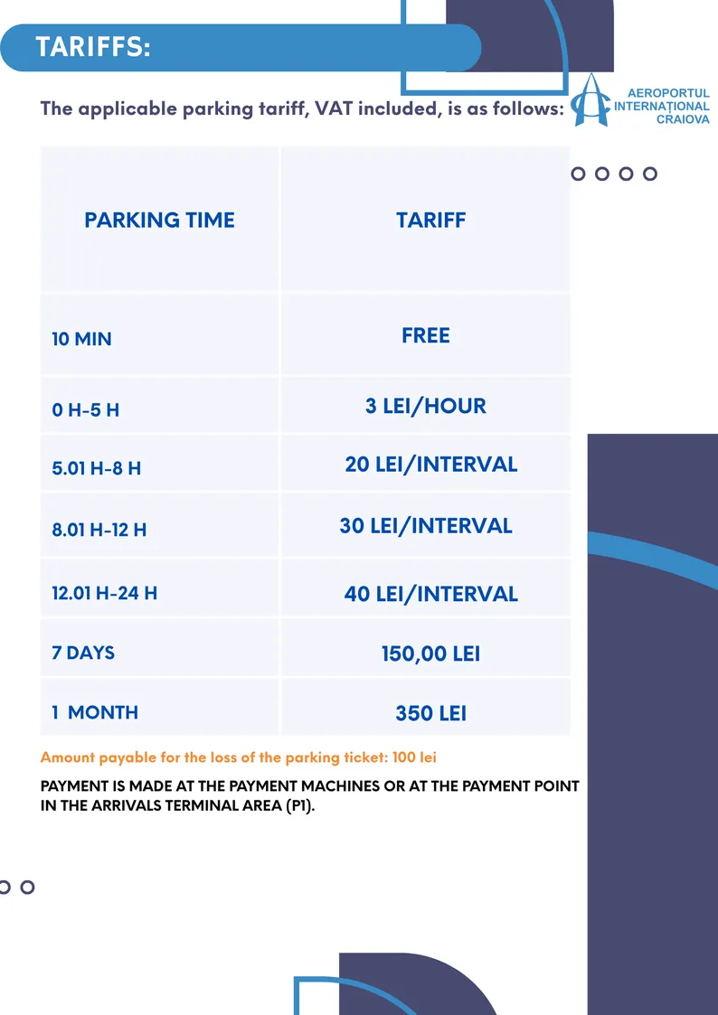 Tarife Parcare