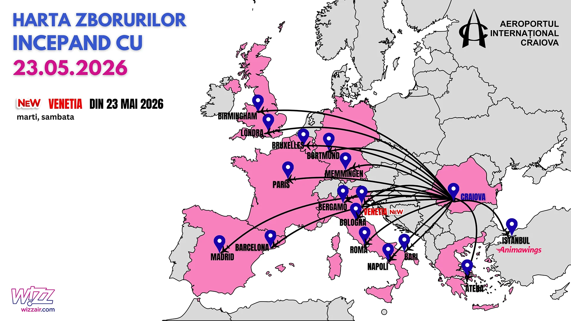 Lista cu zborurile regulate de pe Aeroportul International Craiova